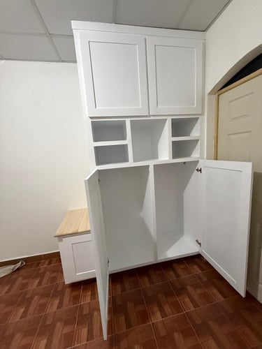 Elaboración a medida de closets, gabinetes, muebles de baño y cocina. Diseños que maximizan el espacio y la funcionalidad.