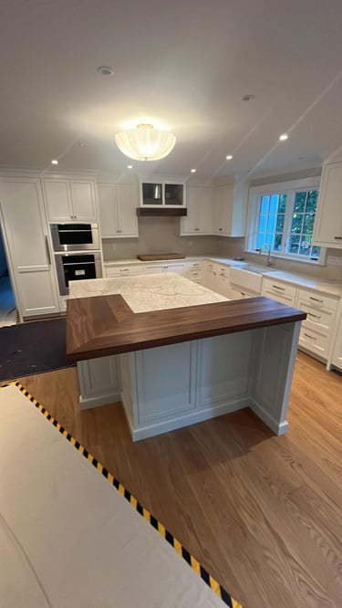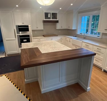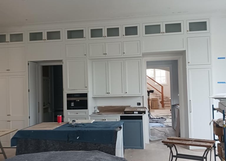 Cocinas funcionales y elegantes. Instalación de salpicadero de cerámica, gabinetes y encimeras a medida.