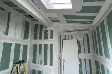 Instalación de paredes y cielos en tabla yeso. Divisiones, remates decorativos y molduras con acabados impecables