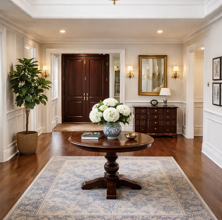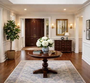 Instalación de puertas y molduras decorativas en madera. Acabados finos y de calidad que aportan calidez y elegancia a cada espacio.