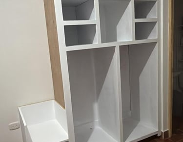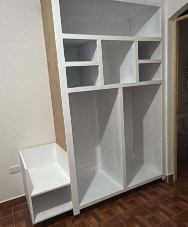 Diseñamos y fabricamos closets, gabinetes y muebles a medida que se adaptan perfectamente a cada espacio de tu hogar. Utilizamos materiales de calidad y acabados cuidadosamente trabajados para maximizar la funcionalidad, la organización y la estética de cada ambiente.